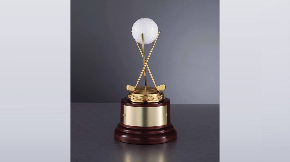 真鍮製:木製台 ホールインワンやイーグルショットの記念に、記念ボールを飾るタイプのトロフィーです。