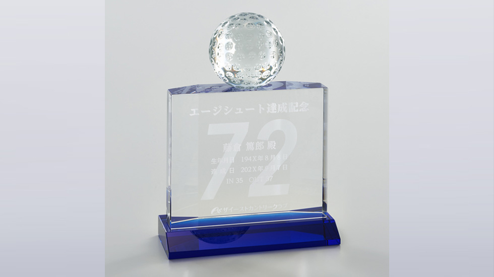 光学ガラス製オーナメント:2Dレーザー加工エージシュート記念やホールインワンの記念品に。