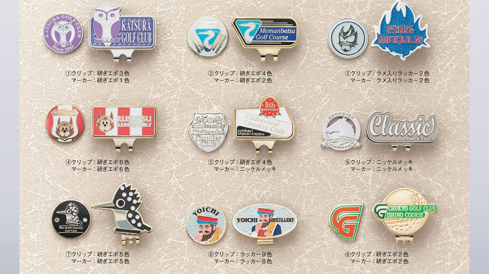 ゴルフ場主催の競技会やプライベートコンペグッズ、ゴルフ同好会や、ホールインワンの記念品。その他オーダーメイドでゴルフマーカーなども製作いたします。