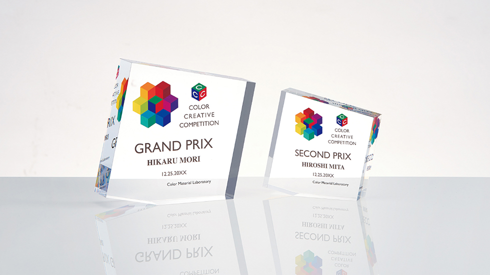 光学ガラス製トロフィー、ダイレクトプリント加工