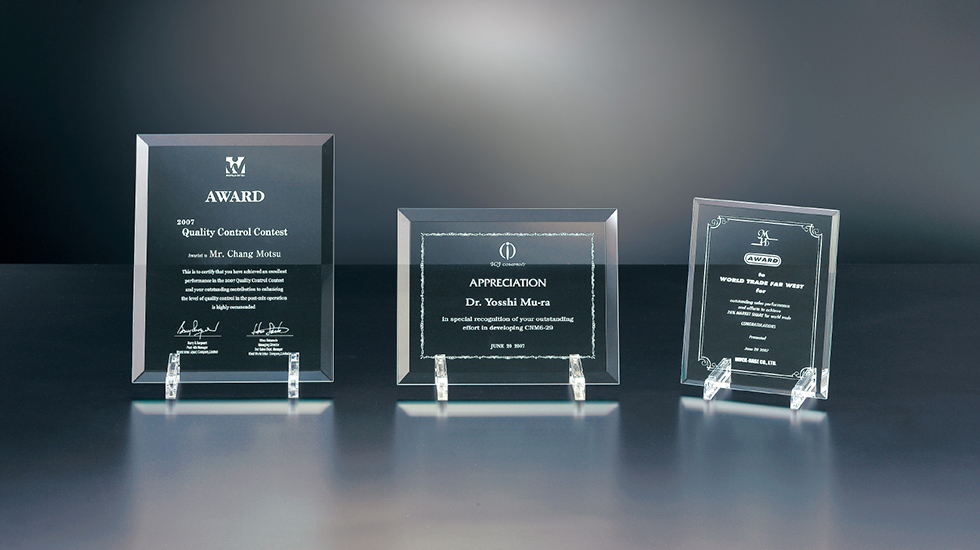 ガラス製楯、レーザー彫刻加工
