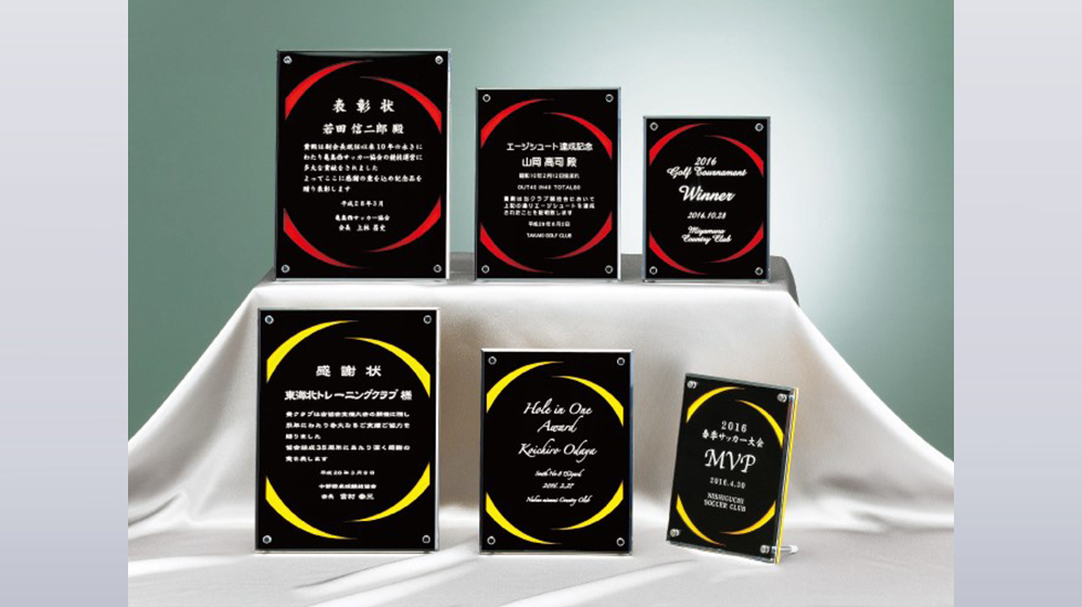 アクリル製楯、レーザー彫刻加工