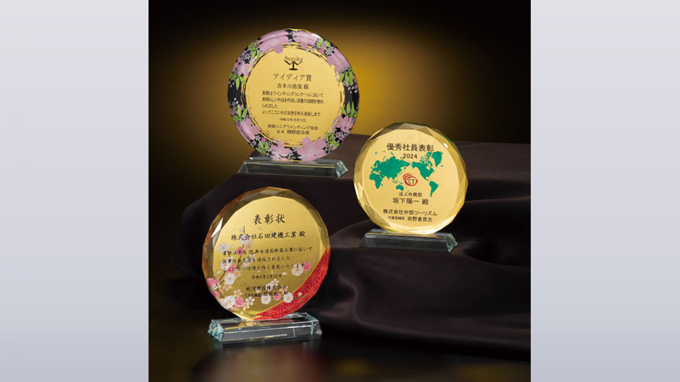 光学ガラス製トロフィー、ダイレクトプリント加工