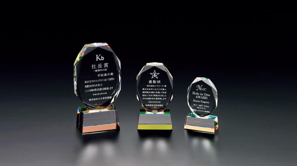 栄光を美しいフォルムでお届けするアワードスタイル。ご予算に応じてご提案から製作までサポートいたします。企業ロゴやメッセージも、カラー印刷やレーザー彫刻で表現することが出来ます。